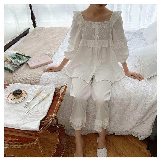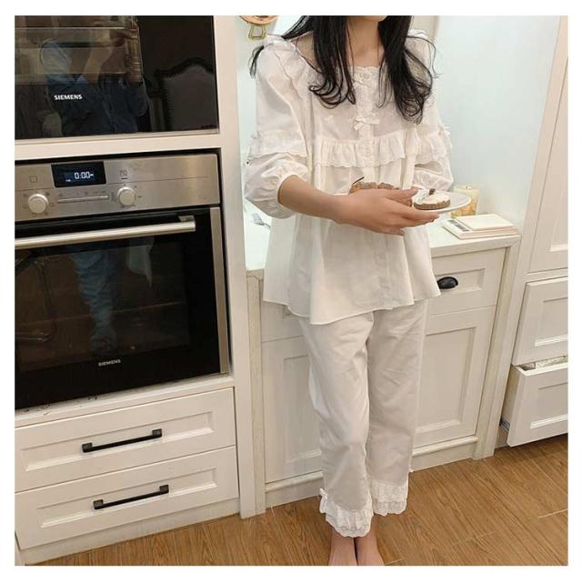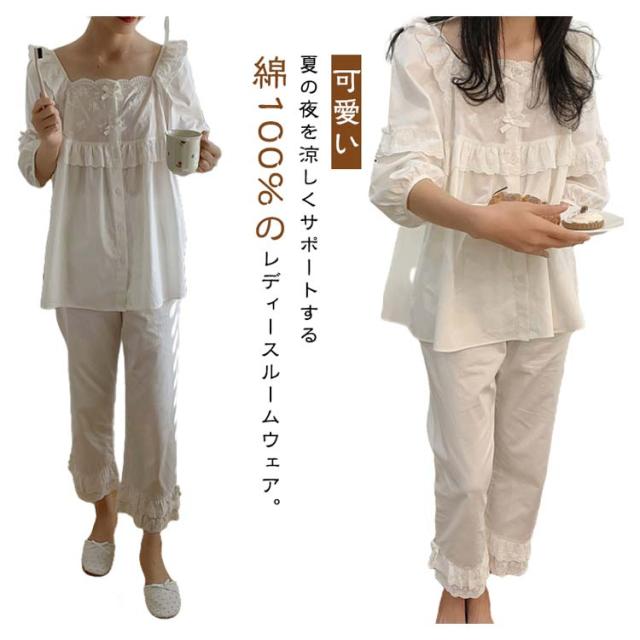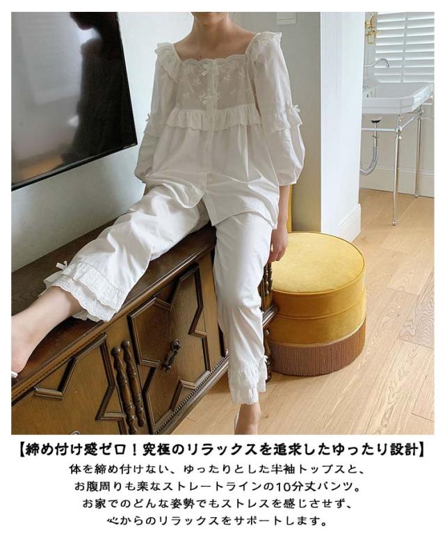 レディース 韓国 夏 綿 夏用 フレア シンプル 無地 春 姫系 パジャマ セットアップ 秋 長袖トップス パジャマ かわいい コットン 可愛い 上下セット 10分丈 大人 半袖 綿100 春秋 ロングパンツ おしゃれ 部屋着 レディース スウェット 寝巻き