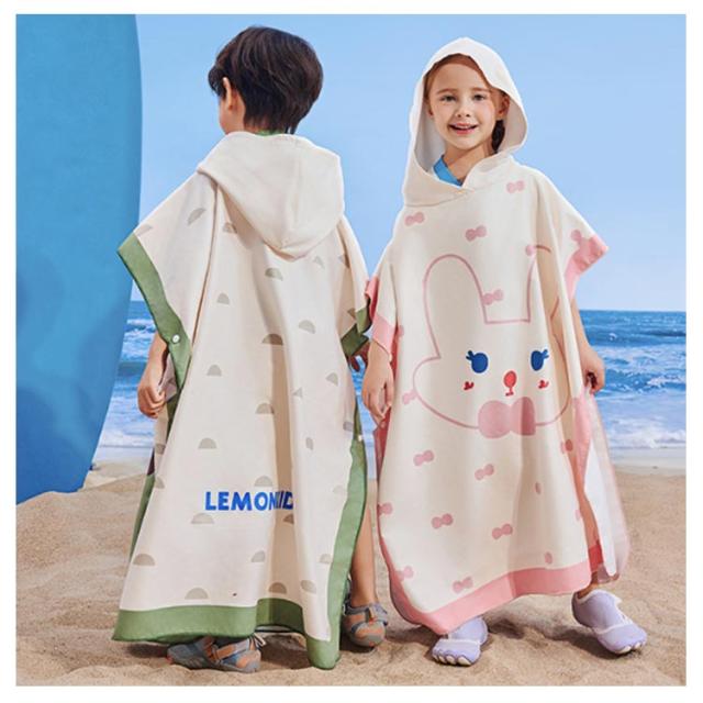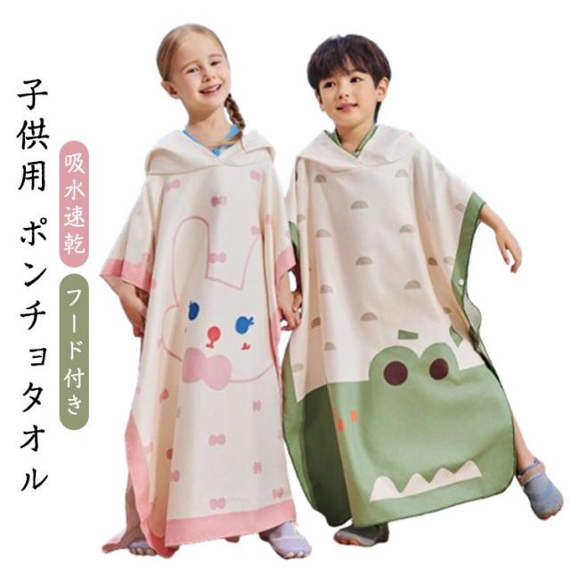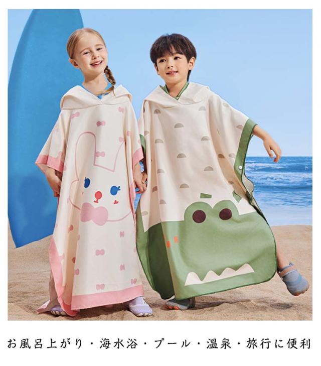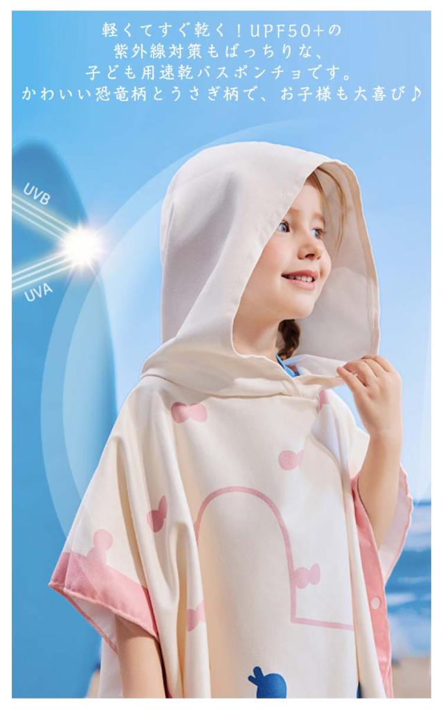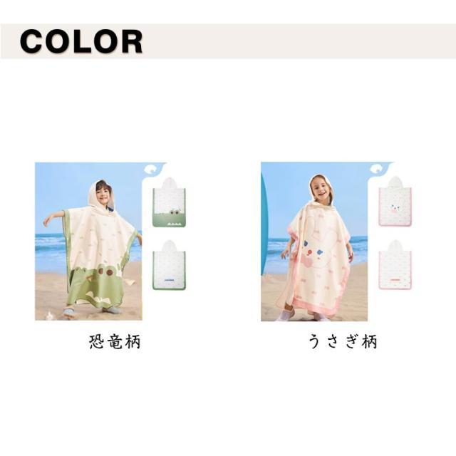 バスタオル ビーチタオル UVカット キッズ ポンチョタオル スイムタオル フード付き フード付き 吸水速乾 恐竜柄 うさぎ柄 バスローブ ゆったり ロールアップ 持ち運び UPF50+ お風呂 プール 海水浴 男の子