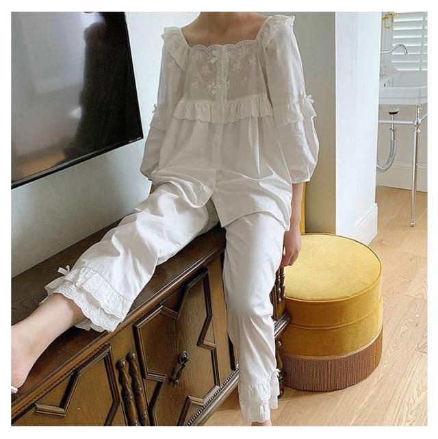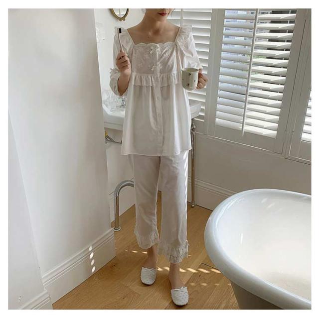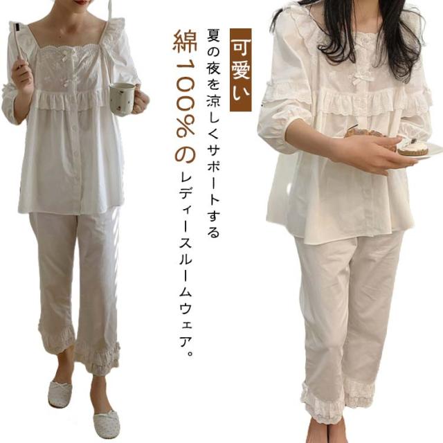 レディース 無地 パジャマ ルームウェア かわいい 夏用 部屋着 春 綿 可愛い 夏 姫系 秋 長袖トップス 韓国 スウェット コットン セットアップ 上下セット 10分丈 大人 半袖 綿100 春秋 ロングパンツ おしゃれ シンプル レディース パジャマ 寝巻き