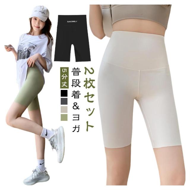 レギパン 夏用 【2枚セット】レギンス 【2枚セット】レギンス ハーフサイズ 無地 着圧 5分丈 ヨガ用 ヨガウェア 大きいサイズ レディース ホットヨガ トレーニング スパッツ ピラティス スポーツ アウター ハイウエスト 見せパンツ