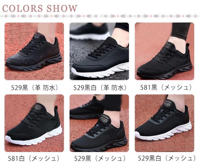 | 色 | 529黒(革防水) 529黒白(革防水) 581黒(メッシュ) 581白(メッシュ) 529黒(メッシュ) 529黒白(メッシュ) |