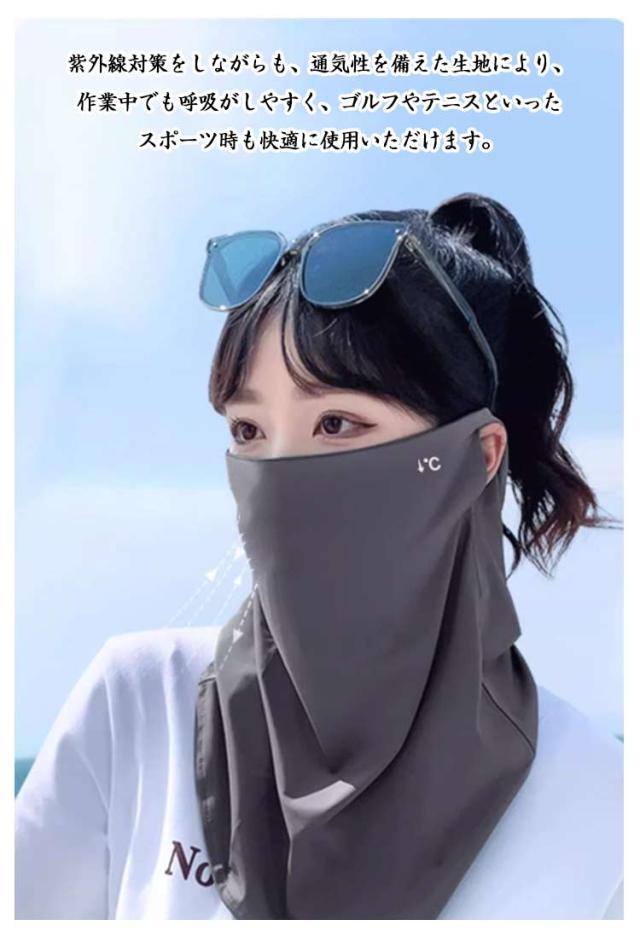 | ひんやり気持ちの良い接触冷感素材を使ったフェイスカバー。 紫外線カット率99%・UPF50+の特殊生地を採用し、顔だけでなく首元までしっかりガード! 紫外線対策をしながらも、通気性を備えた生地により、作業中でも呼吸がしやすく、ゴルフやテニスといったスポーツ時も快適に使用いただけます。 接触冷感素材を使用し、肌に触れた瞬間、ひんやり爽快! 軽くて薄いストレッチ性に優れた生地で、着けたときにフィット感があります。耳掛け部分があるためズレにくく、ソフトな設計で耳も痛くなりにくい仕様です。 | |