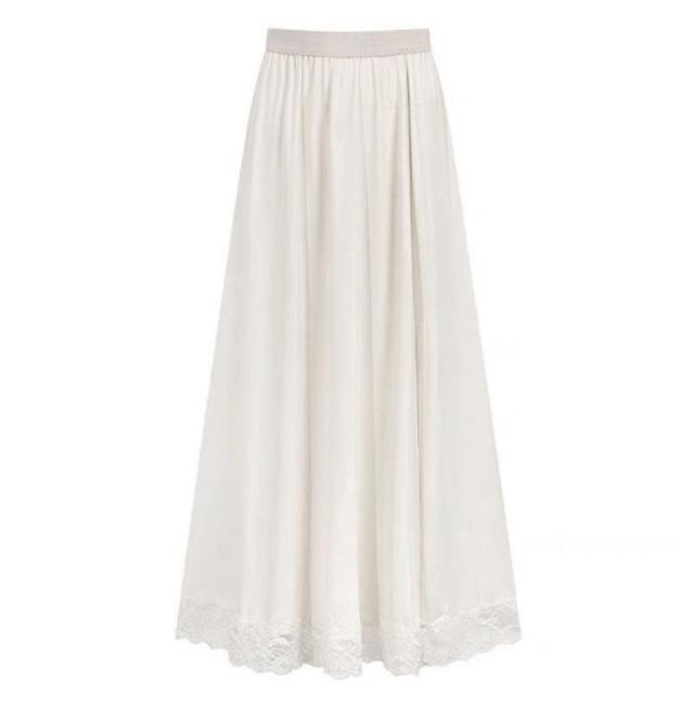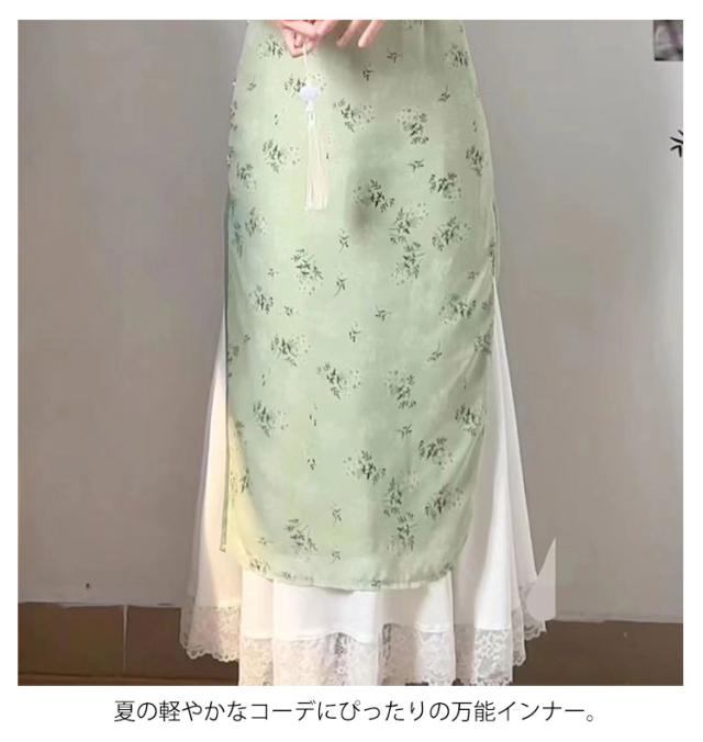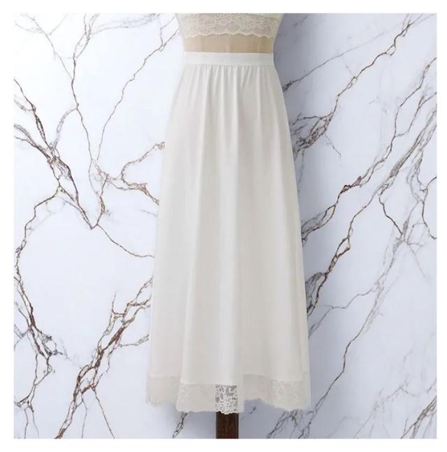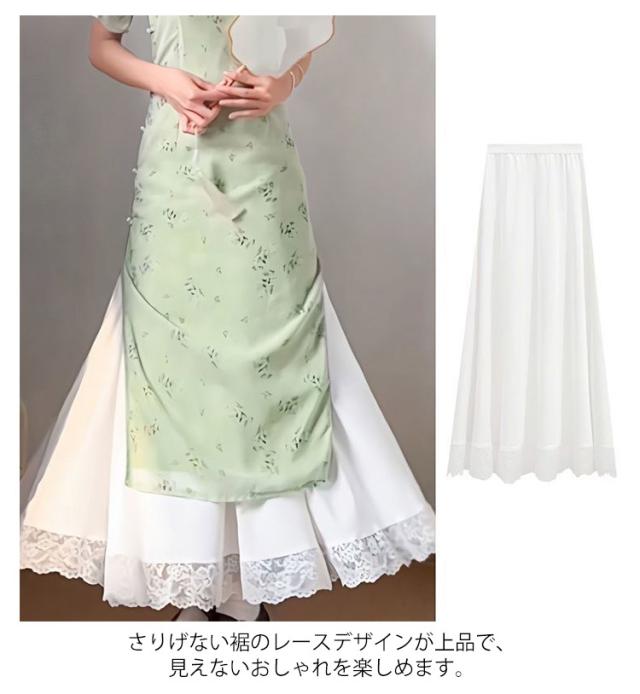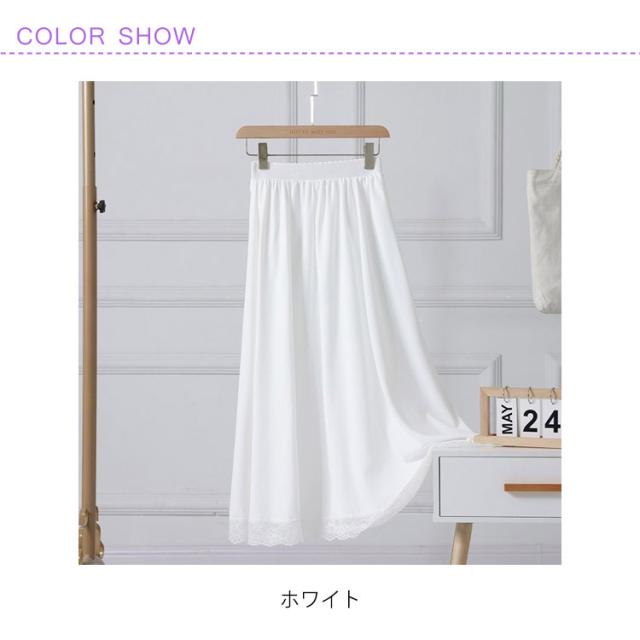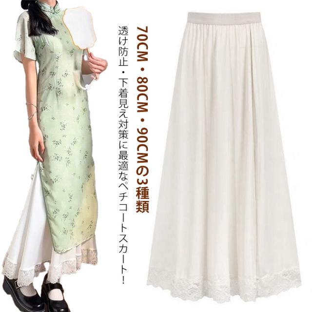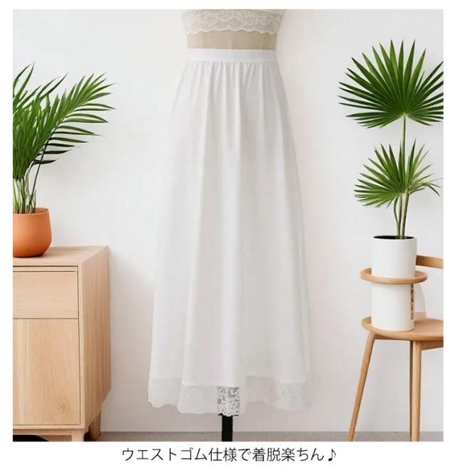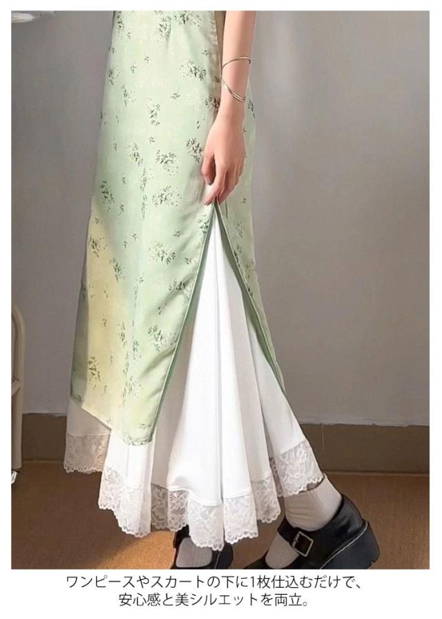 フェミニン ワンピースインナー ホワイト 薄手 夏用 ペチコート インナースカート フレアスカート レース裾 ペチコート 透け防止 レディース 透け感対策 脚長効果 シンプル ふんわり ウエストゴム 柔らかい 重ね着