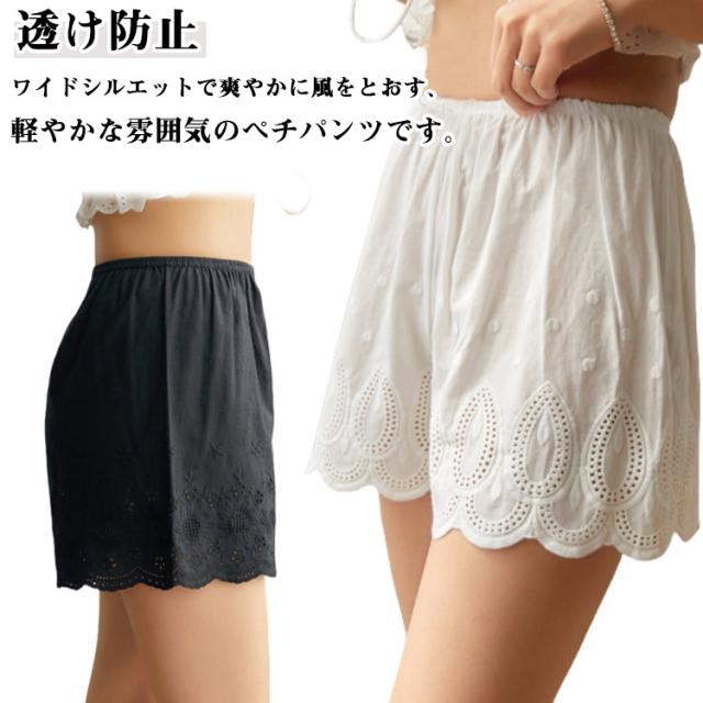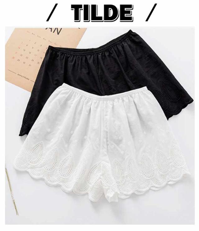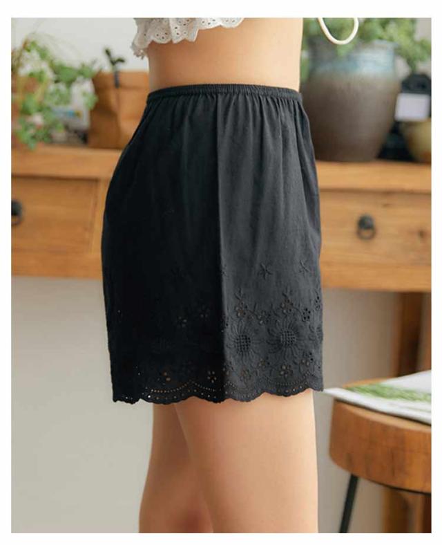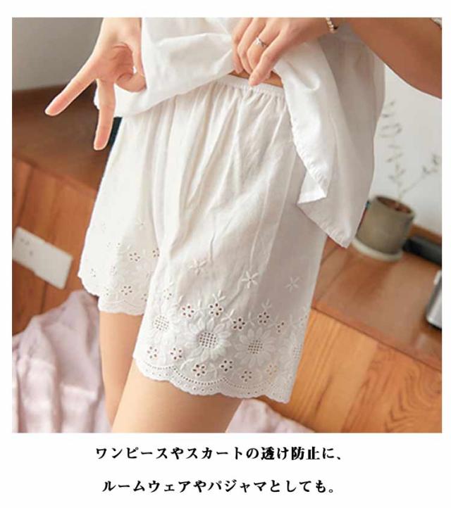 コットン 綿 ワンピース下 インナーパンツ 裾 ショート丈 秋 ナチュラル 夏 ゆったり ペチパンツ 白 ペチパンツ 透け防止 レディース 黒 ゆったり かわいい 大きいサイズ 下着 スカラップ 春 ルームウェア インナー 部屋着