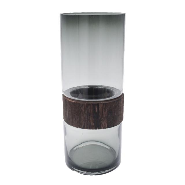 ●アンティークカラーの木とスモーク色のガラスの異素材がオシャレなガラスベースです。