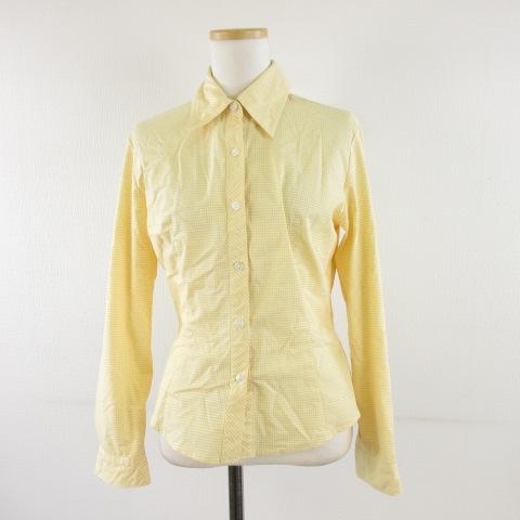 【中古】ディアプリンセス Dear princess チェックシャツ 長袖 ストレッチ 黄 白 *A350 レディース