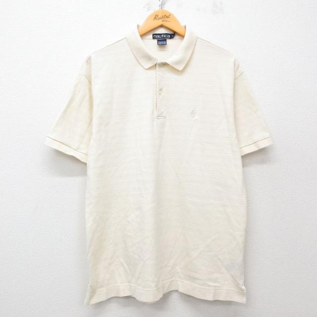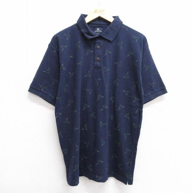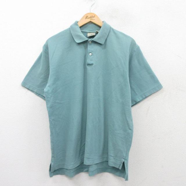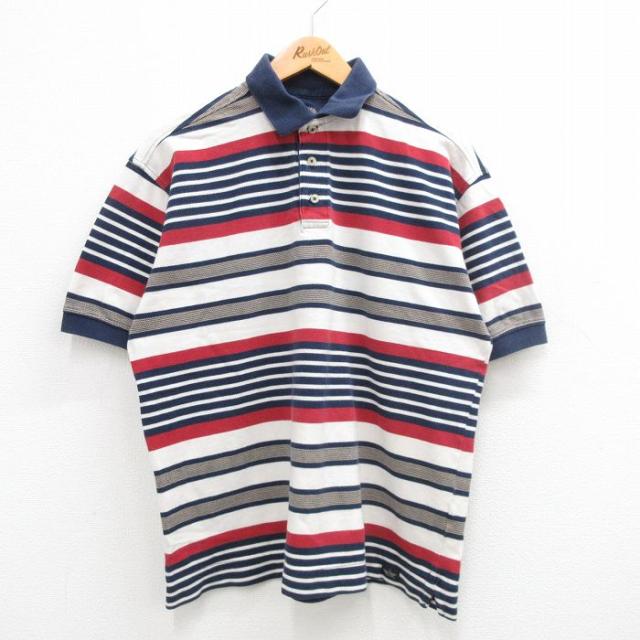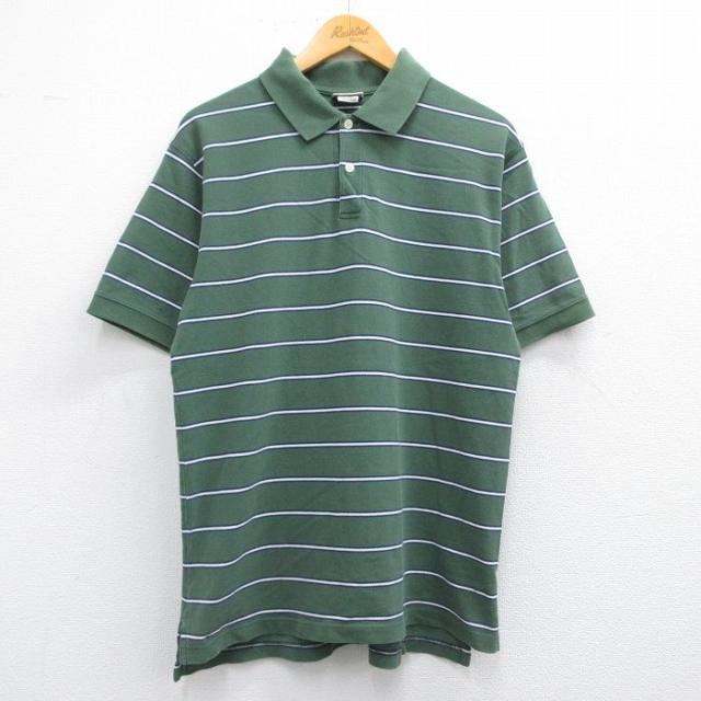 【商品名】 M★古着 エルエルビーン 半袖 ブランド ポロ シャツ メンズ 鹿の子 コットン 紺他 ボーダー