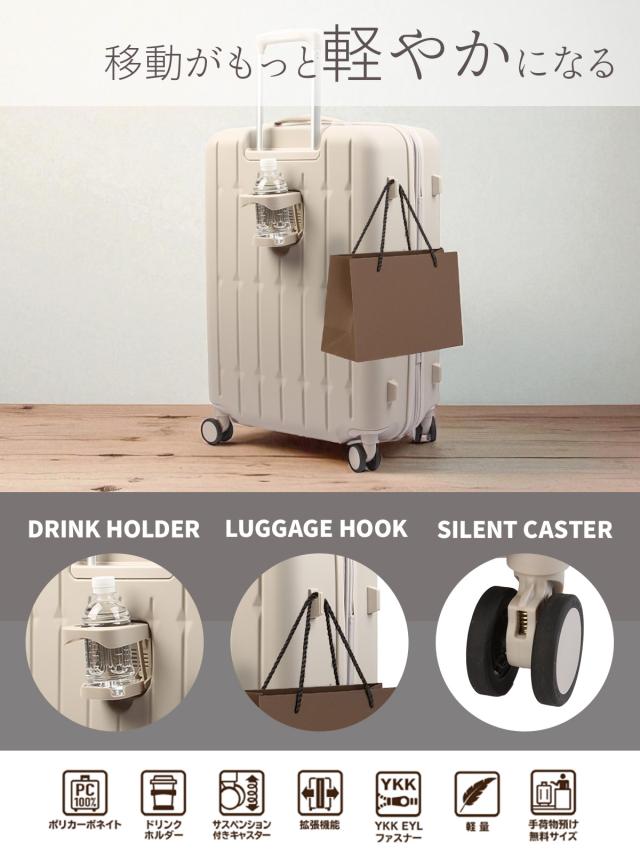 商品レビューで+5%|アジアラゲージ スーツケース Mサイズ 66L 76L 拡張 ドリンクホルダー キャリーケース A.L.I Asia Luggage ALI-6030SD-24W