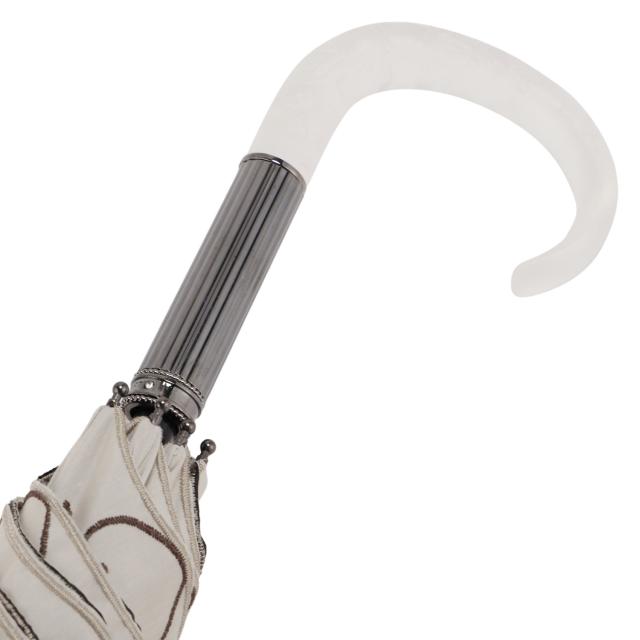 特殊三層ラミネート構造からなる優れた遮熱性を持つ「東レ サマーシールド」(体感温度マイナス4℃以上)を使用した晴雨兼用長傘。遮光性・UVカット(遮光率100%、UV遮蔽率100%)も兼ね備えているハイスペック仕様です。デザインは線描きタッチのアーティーなフルーツ柄刺繍。リッチなエンブロイダリーが甘すぎず、クールな抜け感を演出します。持ち手のスリガラス調のフルーツレリーフは、アンティークジュエリーをイメージしています。ノスタルジックなアクセントが、JILL STUARTらしさを引き立てます。