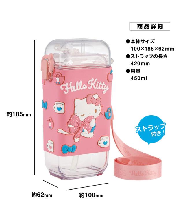 \今だけ10%OFF/ 水筒 キッズ 450ml スクエア ストロー ワンプッシュ ベルト付き カバー付き 子供 子ども ストロー飲み 男の子 女の子 男子 女子 保育園 幼稚園 遠足 キャラクター おしゃれ かわいい 常温 幼児 こども ディズニー サンリオ PSQ5ST