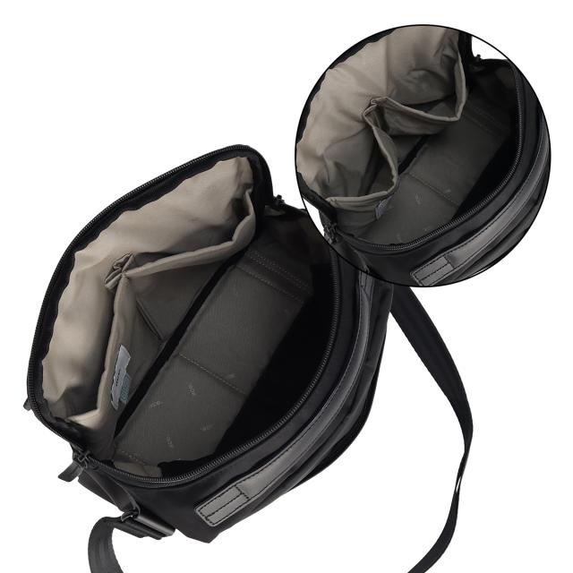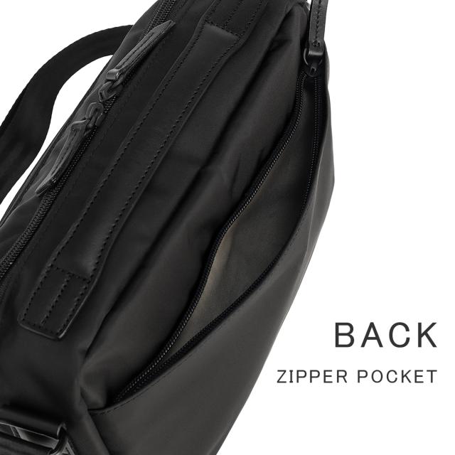 貴重品を収納するのに便利な背面ファスナーポケット。