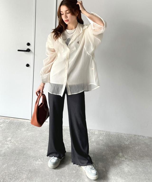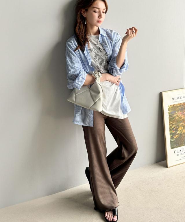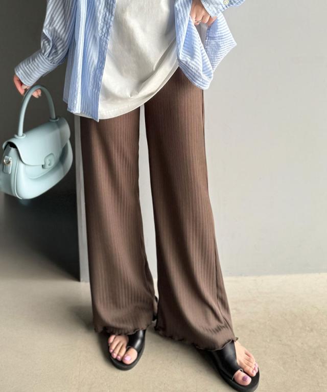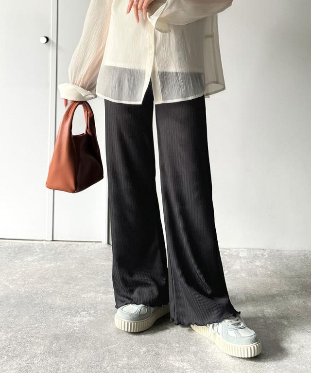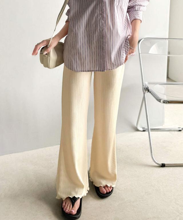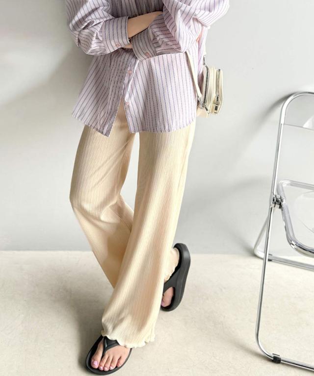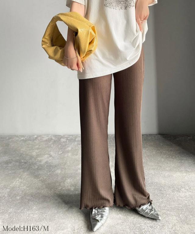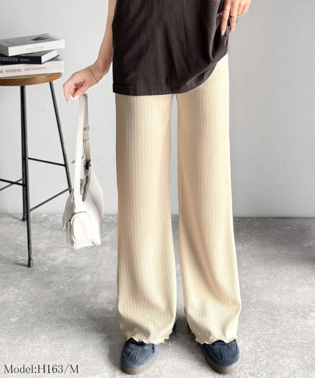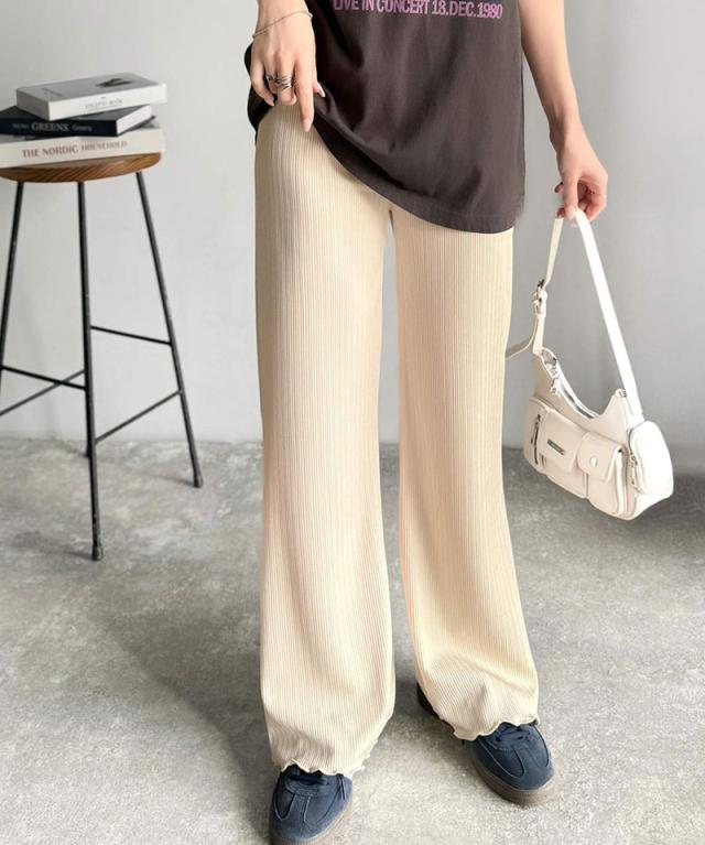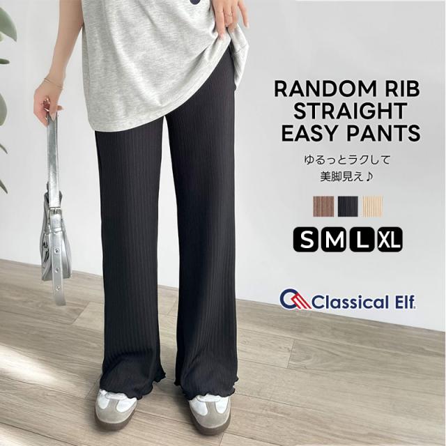 クラシカルエルフ冬新作 ボトムス パンツ レディース イージーパンツ ストレート 裾メロウ ランダムリブ ゆるっと 美脚パンツ カジュアル きれいめ すらっと 優秀ボトムス 細見え カットソー素材 ウエストゴム仕様 楽ちん 大きいサイズ 2025ss ce1020317
