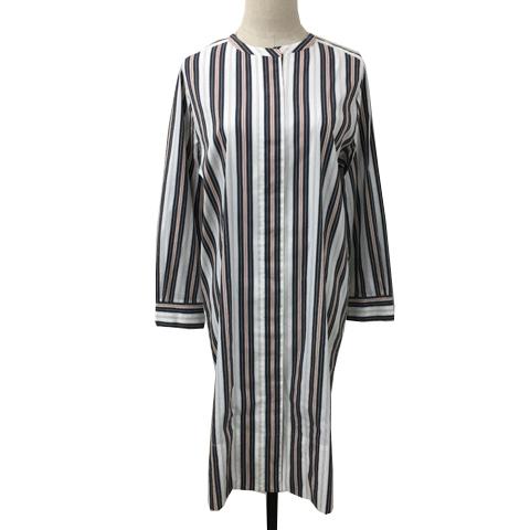 【中古】アマカ ワンピース シャツワンピ Iライン 膝丈 スリットネック ストライプ 長袖 38 白 グレー ホワイト