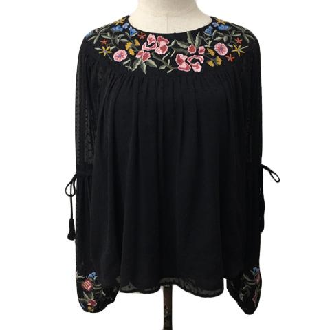 【中古】ザラ トラファルック collection カットソー ブラウス プルオーバー シアー 刺繍 長袖 USA XS 黒 ピンク