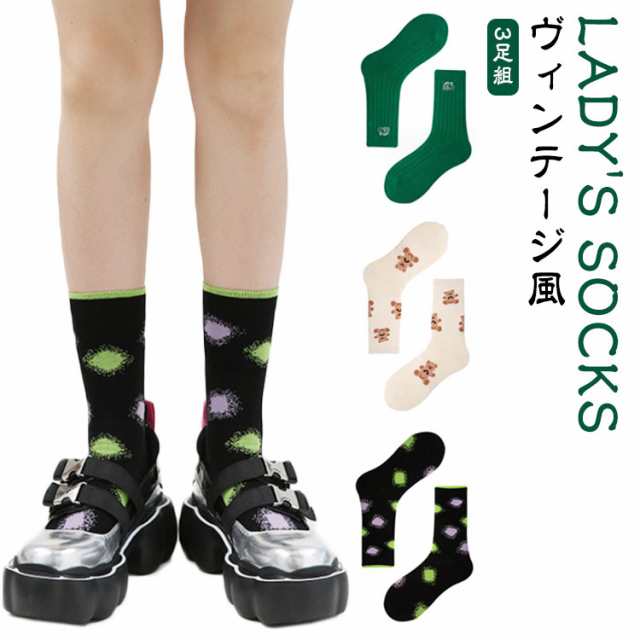 靴下 北欧 靴下 くまさん くまさん くつした 靴下 スニーカーソックス 秋色 3足セット ソックス おしゃれ ソックス ミドル丈 ヴィンテージ風 クルー丈 靴下 レトロ クルーソックス 夏用 靴下 ソックス クマ 靴下 ソックス 秋用 女性用 レディース