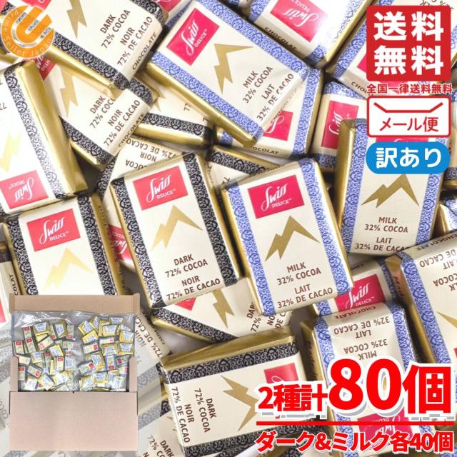 スイスデリス ダークチョコレート & ミルクチョコレート 食べ比べ 80個(2種x40個) 訳あり