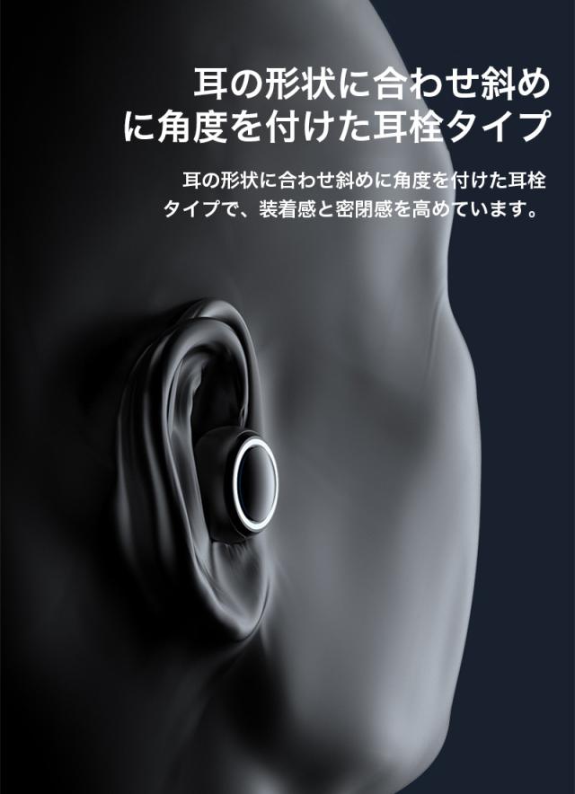 耳の形状に合わせ斜めに角度を付けた耳栓タイプで、装着感と密閉感を高めています。