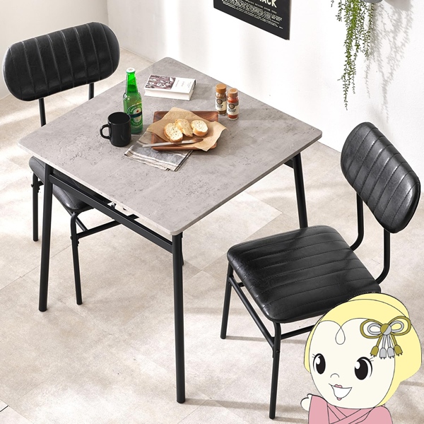 クッション性のある座面で座り心地の良い、コンパクトなダイニング3点セット。落ち着きのあるヴィンテージな空間がつくれます。 【カラー】 マーブルグレー 【商品サイズ(約)】 テーブル:幅70×奥行70×高さ70cm チェア:幅45×奥行48×高さ78cm(座面高43cm) 【材質】 天板:合成樹脂化粧繊維板 フレーム:スチール(粉体塗装) クッション材:ウレタンフォーム 生地:合成皮革 【生産国】中国 【備考】組立品 ※お客様組立て品につきましては、組み立て後に不良の連絡をされても対応ができません。組み立て前にパーツに不良・傷等がないか、必ずご確認下さいますようよろしくお願い申し上げます。 ※記載は商品仕様の一部です。仕様説明不足等の理由での返品はできません。特に適合等は必ずご確認ください。