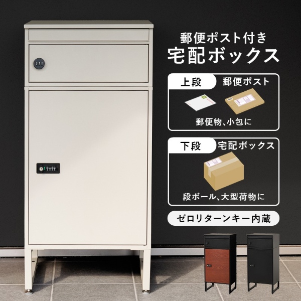 【検索用ワード】萩原 宅配ボックス 郵便ポスト一体型 幅45cm 郵便 配達 投函口 置き型 戸建て用 一戸建て用 おしゃれ モダン 複数受取 ステッカー 防犯 ワイヤー 不在受取 戸建 鍵付き ポスト 大容量