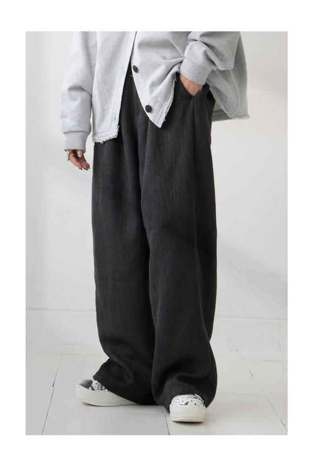 zk-00222 パンツ ツイード タックパンツ ロング ユニセックス シンプル 上品 セットアップ シンプル カジュアル オフィス フォーマル ウエストゴム 体型カバー 美脚 裏地付き
