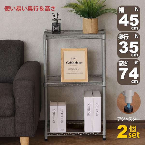 商品名:2個セット スチールラック 3段 スリム 幅45cm 奥行35cm 高さ74.3cm グレー (約45×35x75cm) アジャスター付き おしゃれ くすみカラー マットシルバー メタル製ラック シェルフ 省スペース キッチンラック 隙間収納 頑丈 スリムラック ベッド横 ソファ横 コンパクト AAS-4302 小さい オープンラック 高さを変えられる棚 丈夫 浅型 家具 インテリア 収納家具 棚 ラック 小型 三段ラック 低い 収納棚 低め スチールラック ロータイプ ローラック 高さ調整 マルチラック フリーラック 多目的ラック 整理棚 オープン棚 オープンシェルフ キッチン収納棚 レンジラック 家電収納 調理家電 キッチンストッカー 玄関ラック 玄関収納 ランドリーラック 本棚 ゲーム機 ディスプレイラック 飾り棚 コレクションラック 小物収納 おもちゃ 雑貨 ランドセルラック フラワースタンド 花台 プランターラック ベッドサイド ソファサイド デスク横 デスクサイド シンプル インダストリアル風 新生活 一人暮らし ワンルーム キッチン 台所 リビング ダイニング 玄関 オフィス 店舗 子供部屋 洗面所 脱衣所 クローゼット 押し入れ パントリー 納戸 すっきり 片付け 可動棚 アジャスター付き ポール径19mm 見せる収納 モノトーン