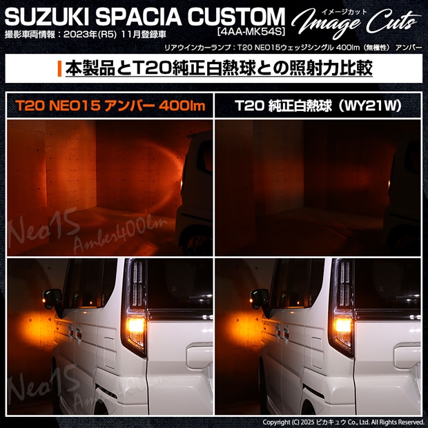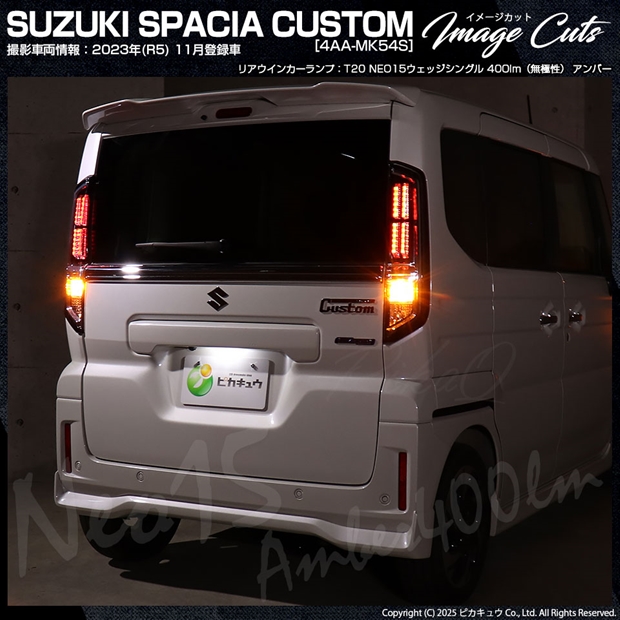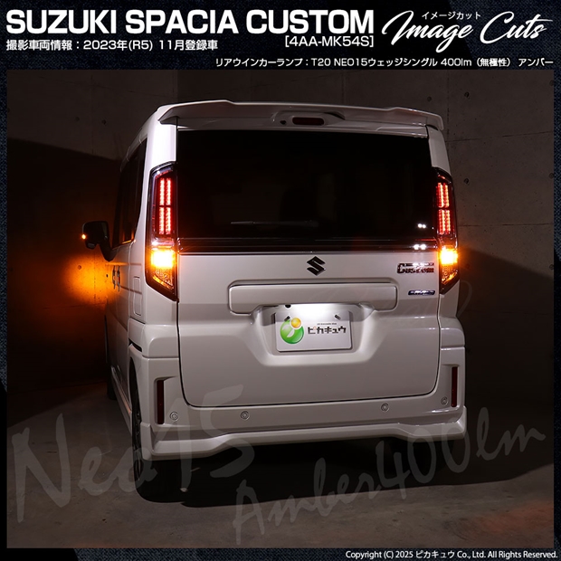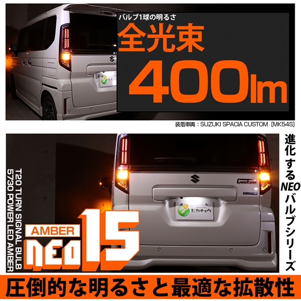 ピカキュウ,LED専門店,LEDバルブ,LED,SMD,T20S,T20シングル,ターンシグナルランプ,ウインカーランプ,DC12V車,NEO15,アンバー,全光束400lm,定電流回路搭載,ハイブリッド車対応,スズキ,SUZUKI,スペーシアカスタム,SPACIA CUSTOM,MK54S,MK94S