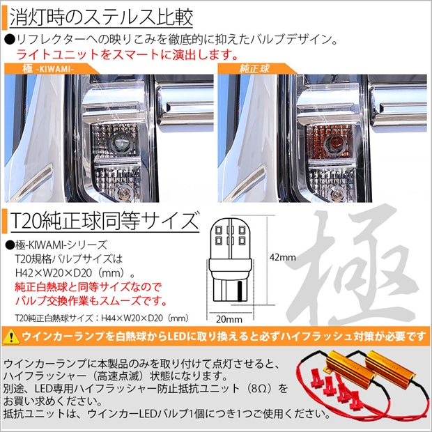 T20シングル 極-KIWAMI-(きわみ)全光束300lm LEDウインカーバルブ