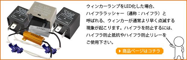 ◆ウインカーランプに本製品のみを取り付けて点灯させると、ハイフラッシャー(高速点滅)状態になります。別途、LED専用ハイフラッシャー防止抵抗ユニット(8Ω)をお買い求めください。抵抗ユニットは、ウインカーLEDバルブ1個につき1つご使用ください。