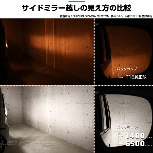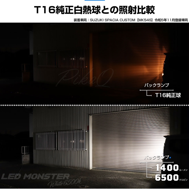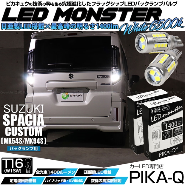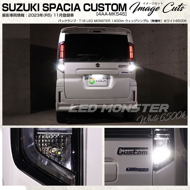 スズキ スペーシアカスタム (MK54S/MK94S) 対応 バックランプ ledバルブ T16 LED monster 1400lm ホワイト 6500K 2個 後退灯 11-H-1