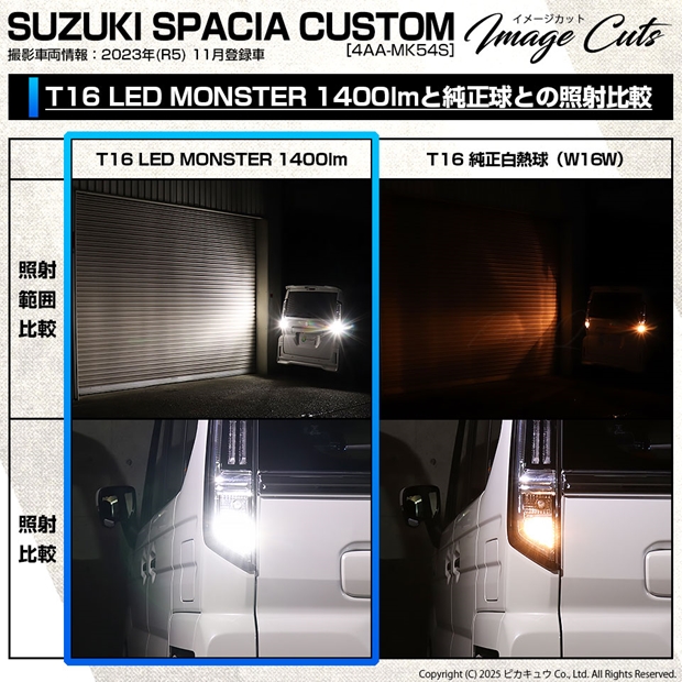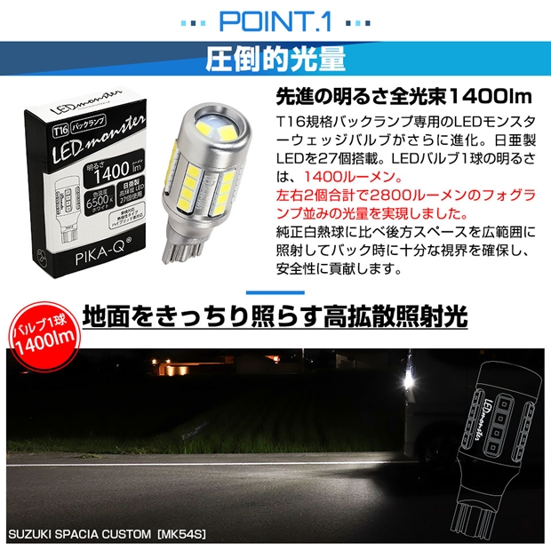 LED,ピカキュウ,LED専門店,LEDバルブ,日亜製LED27個搭載,T16ウェッジ,T16 LED monster1400lmバックランプ用ウェッジバルブ,1400ルーメン,バックランプ,後退灯,スズキ,SUZUKI,スペーシアカスタム,SPACIA CUSTOM,MK54S,MK94S