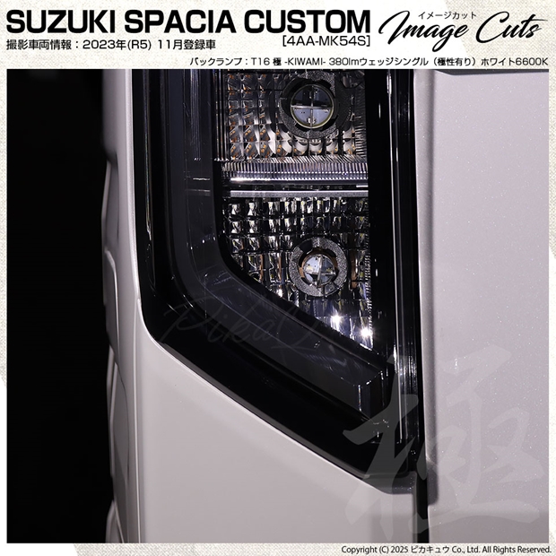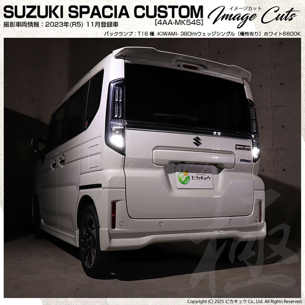 ピカキュウ,LED専門店,LEDバルブ,国産DC12V車,LED,SMD,T16シングル,W16W,バックランプ,ホワイト,全光束380lm,ハイブリッド車対応,極,KIWAMI,きわみ,スズキ,SUZUKI,スペーシアカスタム,SPACIA CUSTOM,MK54S,MK94S