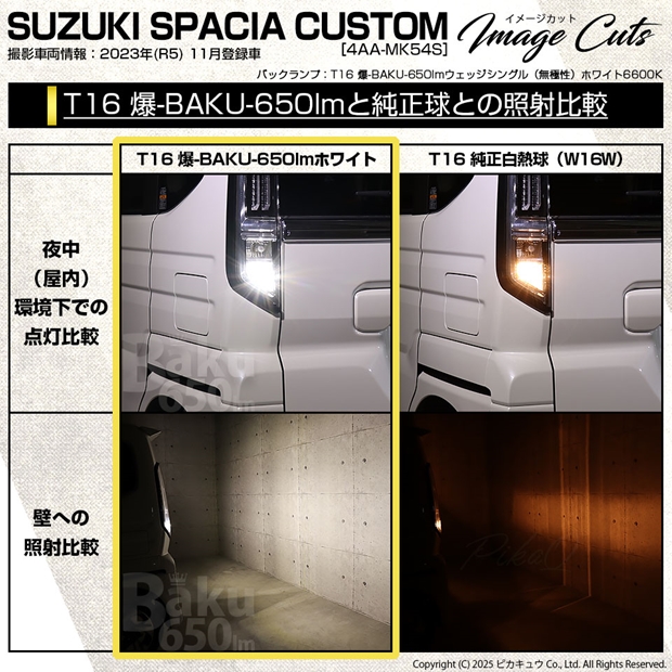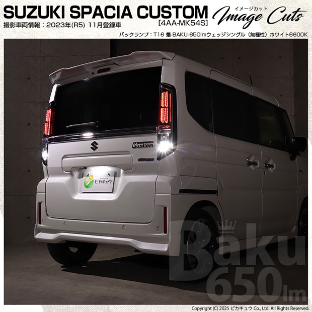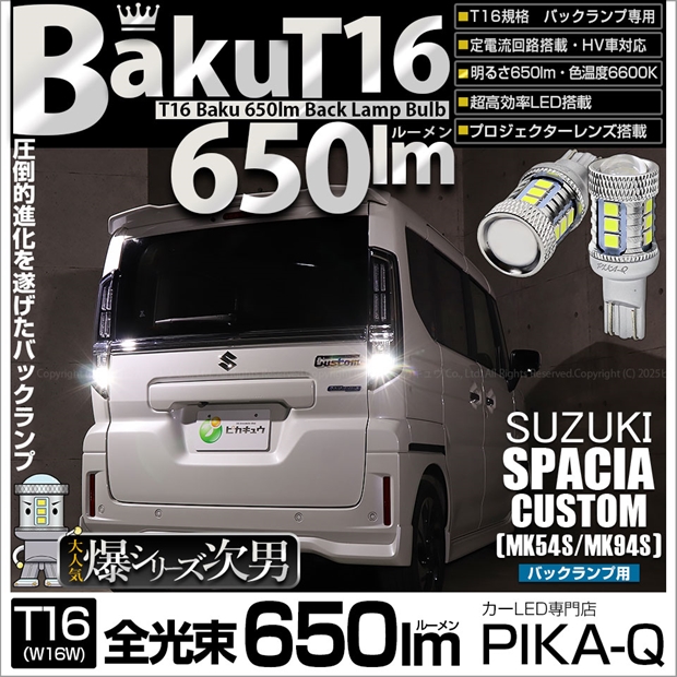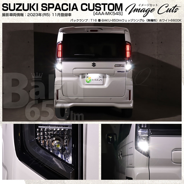 スズキ スペーシアカスタム (MK54S/MK94S) 対応 バックランプ LEDバルブ T16 爆-BAKU-650lm ホワイト 6600K 2個 後退灯 7-B-4