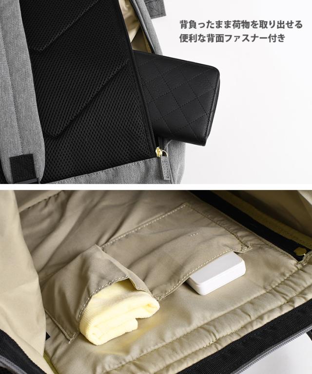 背負ったまま荷物を取り出せる便利な背面ファスナー付き