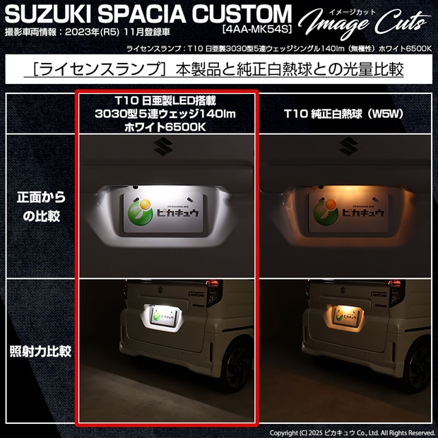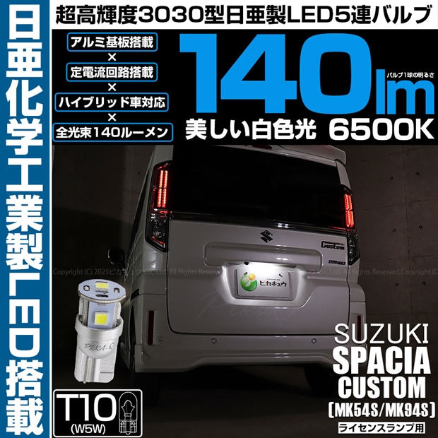 ピカキュウ,LED専門店,LEDバルブ,LED,SMD,T10,W5W,日亜化学工業,日亜,3030,ライセンスランプ,番号灯,爆光,140lm,140ルーメン,スズキ,SUZUKI,スペーシアカスタム,SPACIA CUSTOM,MK54S,MK94S