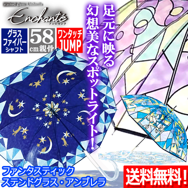 Enchanteアンシャンテ ファンタスティック ステンドグラスJUMPアンブレラ 送料無料 ジャンプ傘 スポットライト 幻想的 ビニール傘 雨天