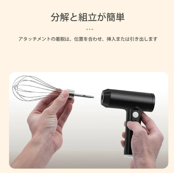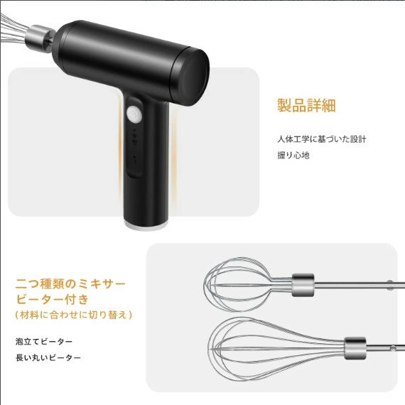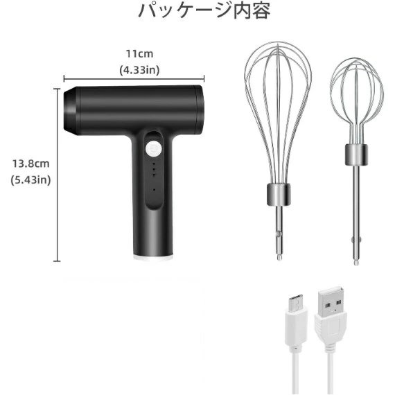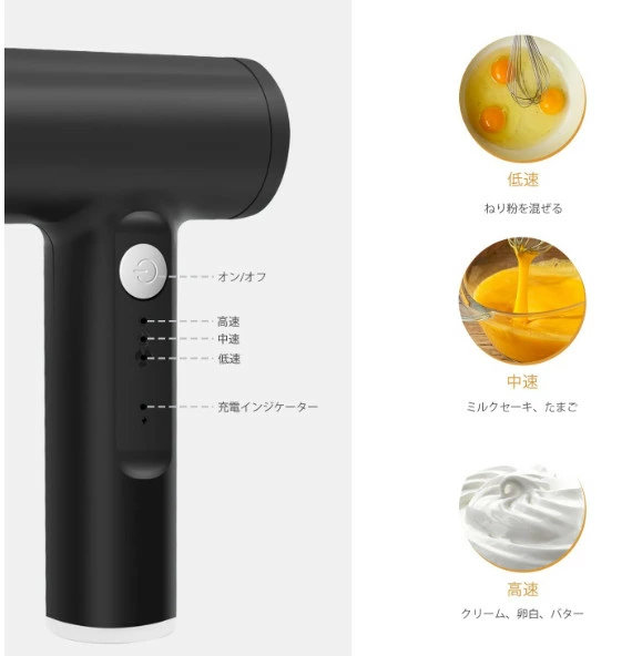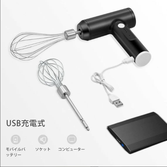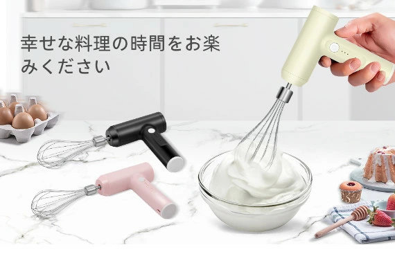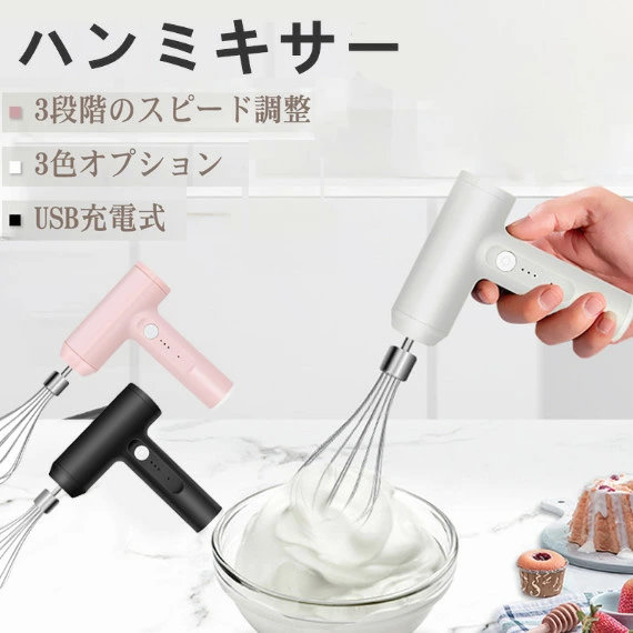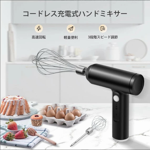 ハンドミキサー 小型 泡立て器 電動 コードレス 3段階スピード調節 ミキサー 充電式 キッチン用 コンパクト 速い 軽い 強力 ホイッパー ホイップ クリーム ケーキ 安い おすすめ お菓子作り 誕生日 バレンタイン ギフト プレゼント