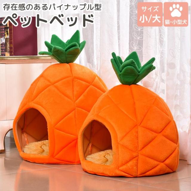 ペットベット 猫 犬 小型犬 ドーム 型 ハウス 秋冬 春 クッション グッズ おしゃれ 可愛い パイナップル フルーツ 果物