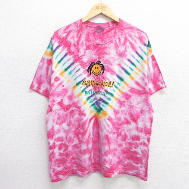 【商品名】 L★古着 ヘインズ 半袖 ビンテージ Tシャツ メンズ 00年代 00s クルーネック 黄他 タイダイ