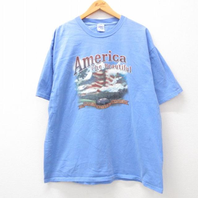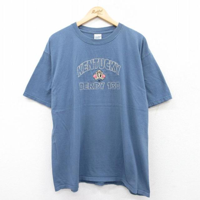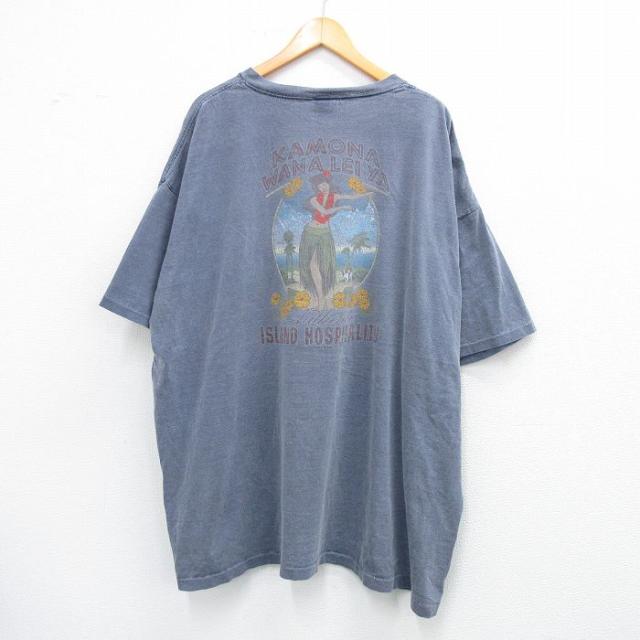 【商品名】 XL★古着 ビッグドッグス 半袖 ビンテージ Tシャツ メンズ 00年代 00s フラガール 大きいサイズ ロング丈 コットン クルーネック 薄紺