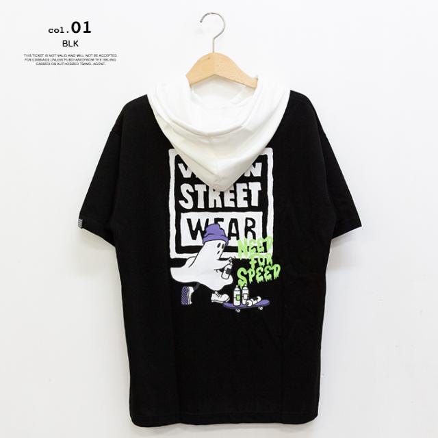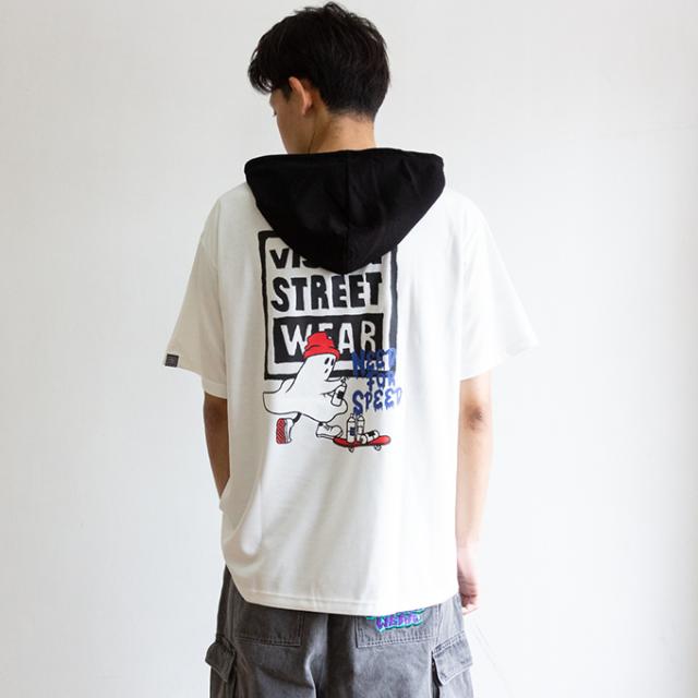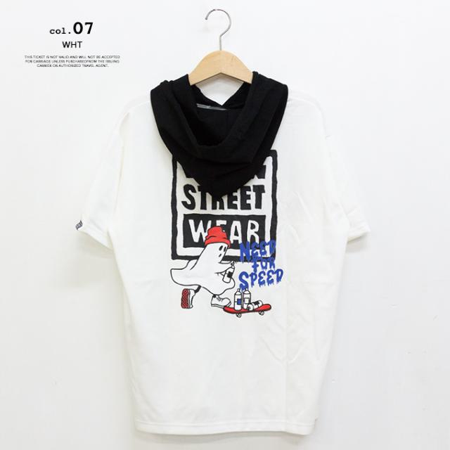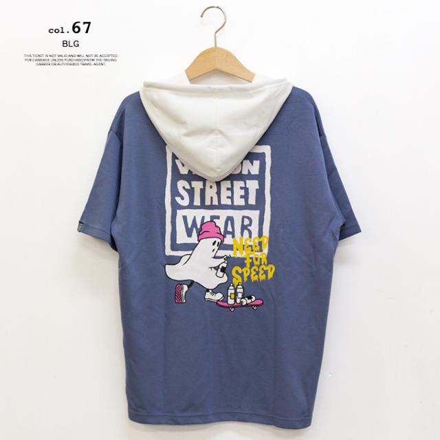 接触冷感 ゴーストスケーター プリント 半袖プルオーバーパーカー Tシャツ 05505021