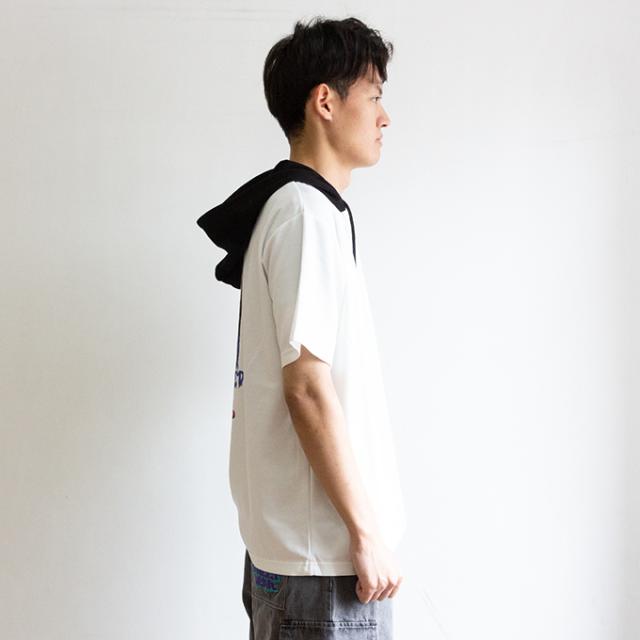 ゴーストスケーターのグラフィックが映える半袖パーカーTシャツ。