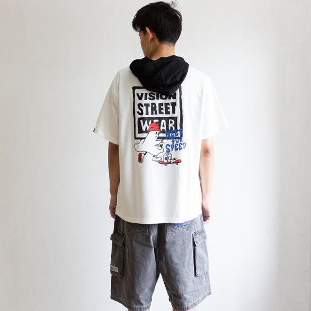 「 VISION STREET WEAR ヴィジョンストリートウェア 」 接触冷感 ゴーストスケーター プリント 半袖プルオーバーパーカー Tシャツ 05505021 / ヴィジョン 半袖パーカー Tシャツ 半袖 接触冷感 バックプリント ゴーストスケーター ストリート カジュアル 2025SUMMER