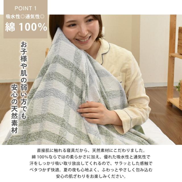 ・夏はこれ1枚でさらっと、冬は掛け布団の下に重ねてあたたかく、一年中活躍します。