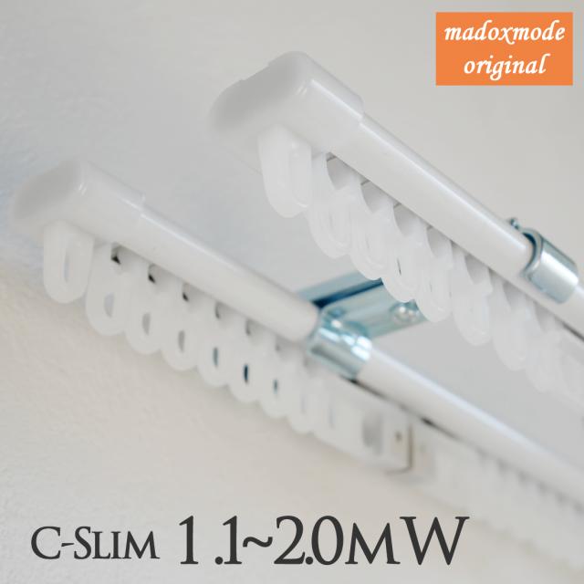日本製 1.1〜2.0m C型ホワイト ダブルタイプ カーテンレール 伸縮 2m ベーシック 白色 白 白い壁紙 おしゃれ 天井付け 正面付け 伸縮自在 DIY ベーシック 両開き シングルセット リフォーム 即納 幅2m