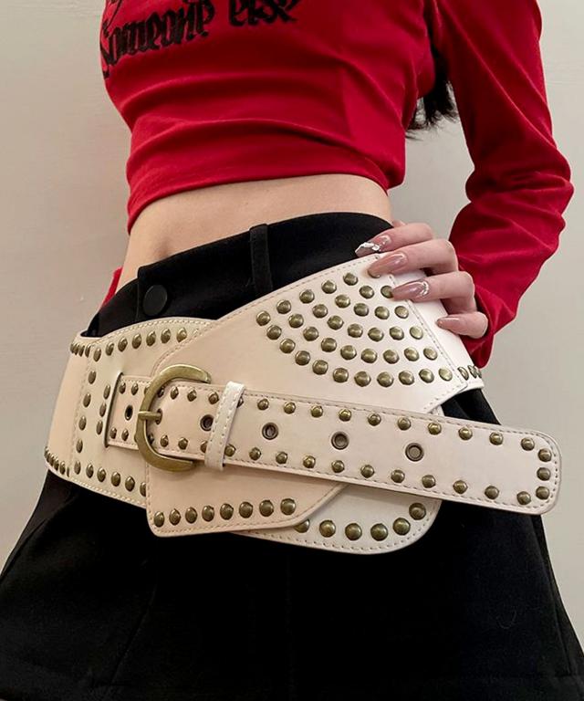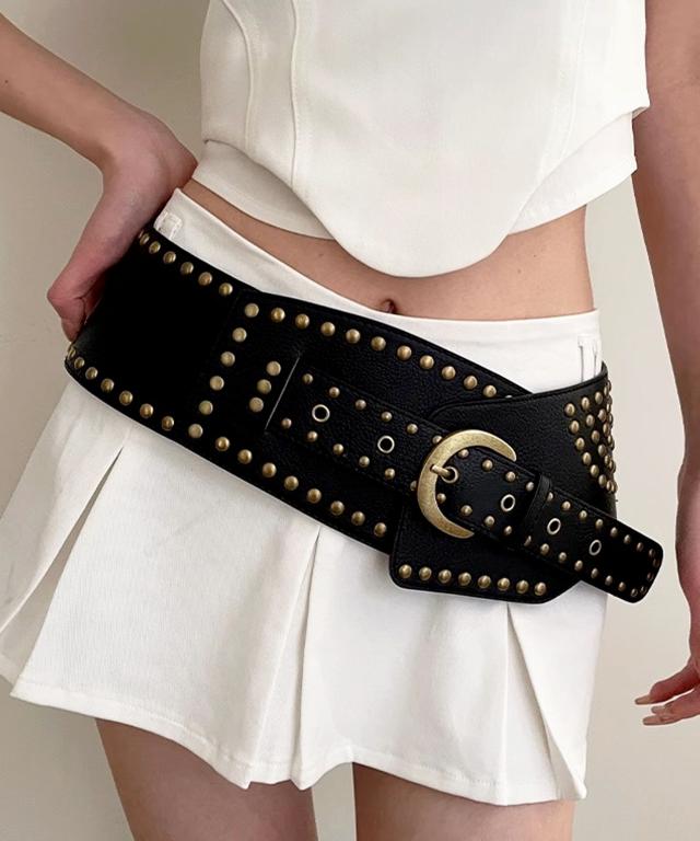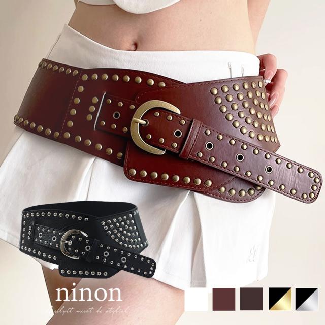 ベルト レディース おしゃれ 太 大きいサイズ ワンピース用 ブランド ジーンズ 太め 白 長さ コーデ デニム 太い 黒 カジュアル ベルト太 太ベルト 幅広 大きい Y2K 韓国 ファッション ヴィンテージ スタッズ 合皮 PUレザー ワイドベルト 韓国ファッション かわいい 可愛い