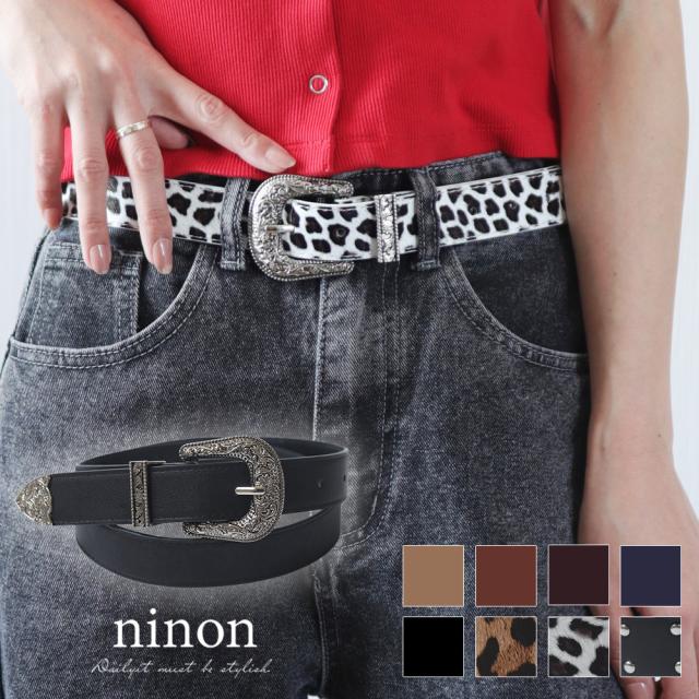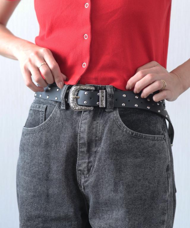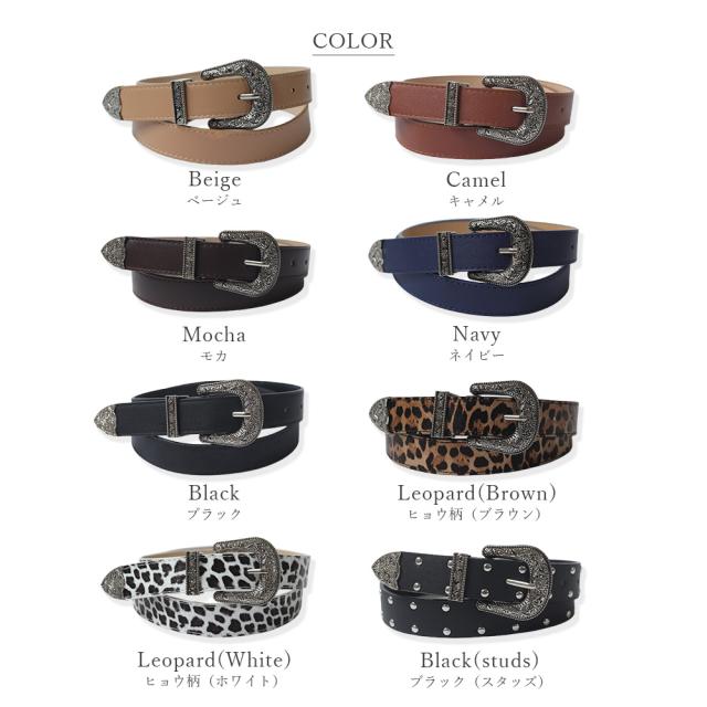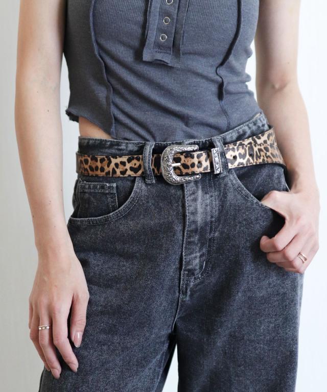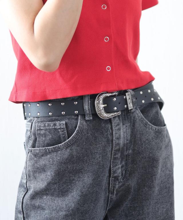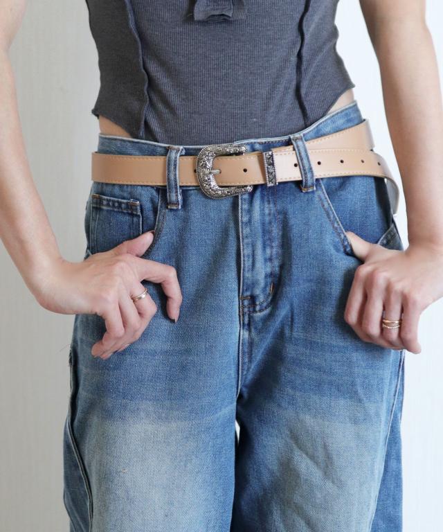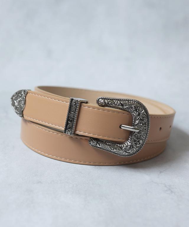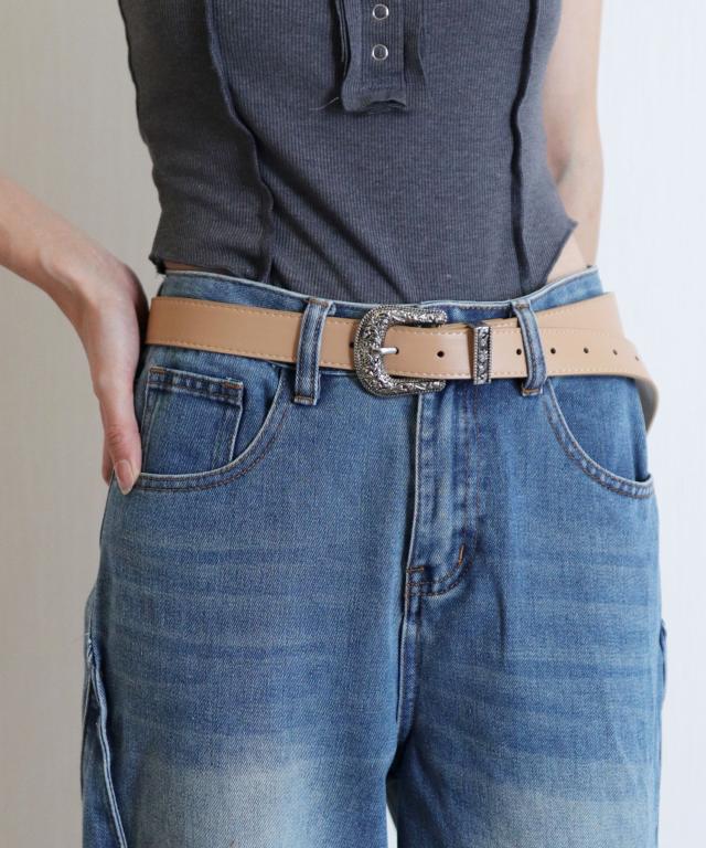 装飾的なシルバーバックルがコーデに映えるウエスタン調ベルト/カジュアルベルト。
