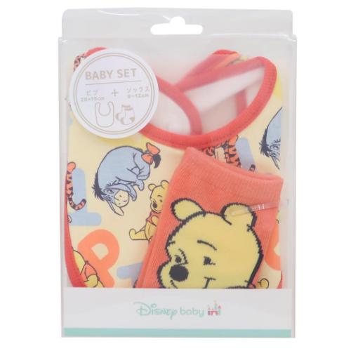 「くまのプーさん ベビー用品 ベビーセット ビブ&ソックス アルファベット ディズニー キャラクター グッズ メール便可」
