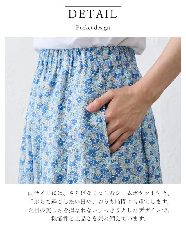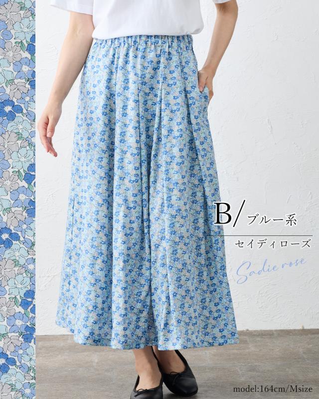 リバティ LIBERTY スカート フレアスカート リネン 麻 レディース フランダースリネン 日本製 花柄 ロングスカート タックスカート 大人 30代 40代 50代 おしゃれ 春 夏 夏用 ファッション 涼しい ポケット付き ミモレ丈 ウエスト ゴム きれいめ ひざ下