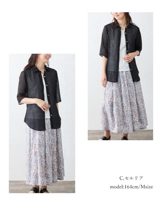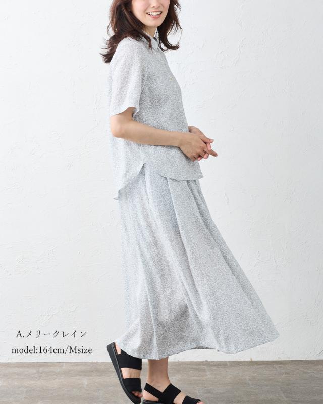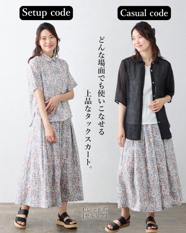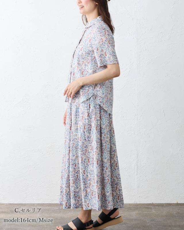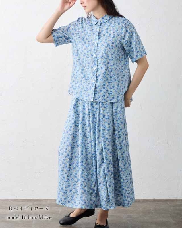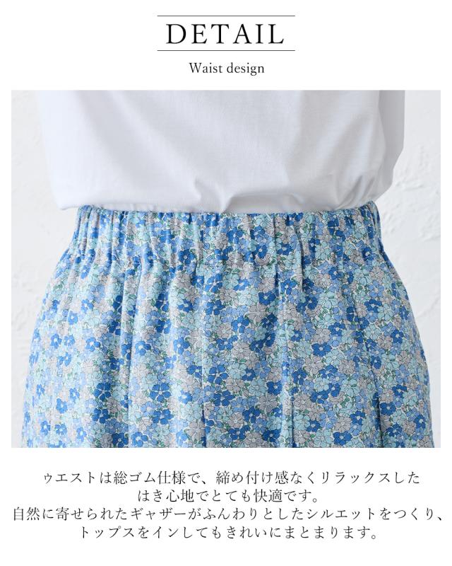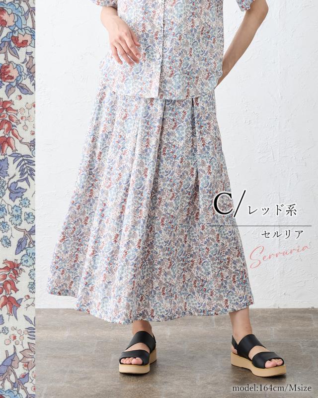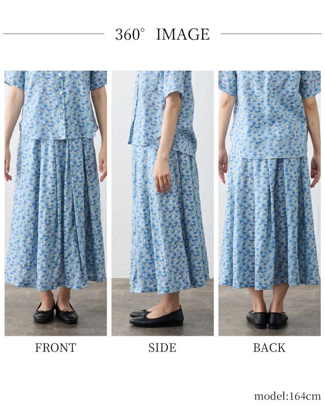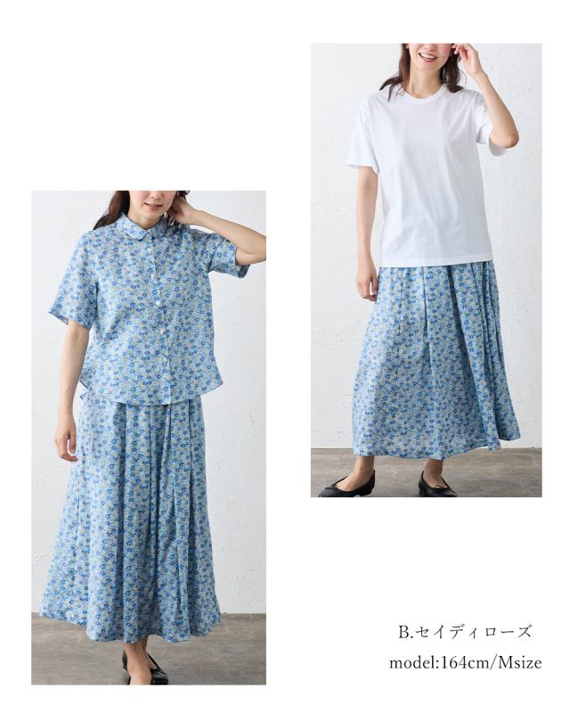 | 商品詳細/その他 | リバティプリントのリネン100%素材を使用したタックフレアスカート。同素材のブラウスとのセットアップも可能です。 |