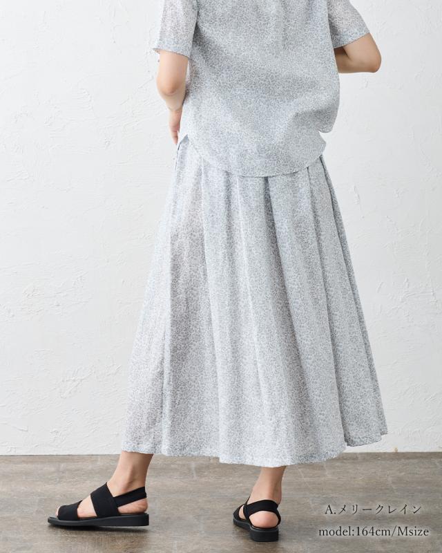 品よく華やぐ、リバティプリント生地を使用したタックスカート。